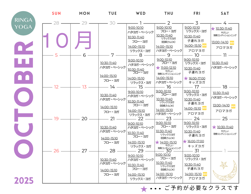 🔹スケジュールの星マークがついているクラスは要予約になります。